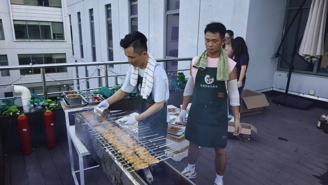 2025年8月19日傍晚,雅本化学张江创新中心15号楼的露台上灯火通明、笑语阵阵,一场以“夏日烟火气·携手共欢聚”为主题的BBQ聚餐活动正热闹开场。这也是每年雅本化学研发团队年中聚餐的传统活动。