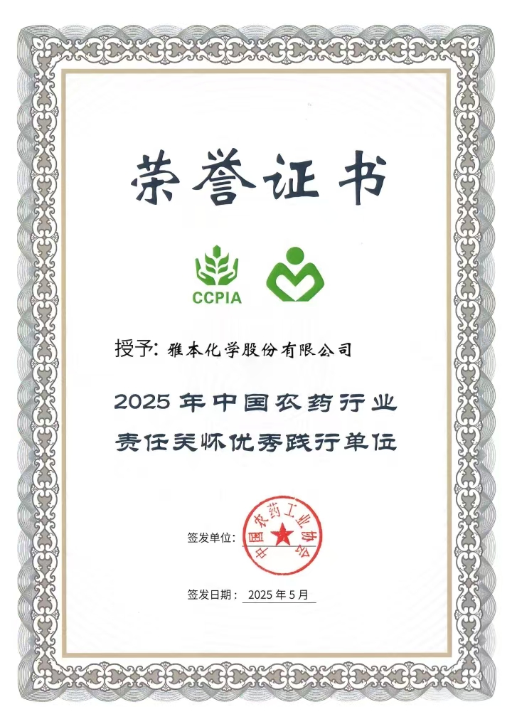 - 雅本化学荣获中国农药行业责任关怀双项荣誉