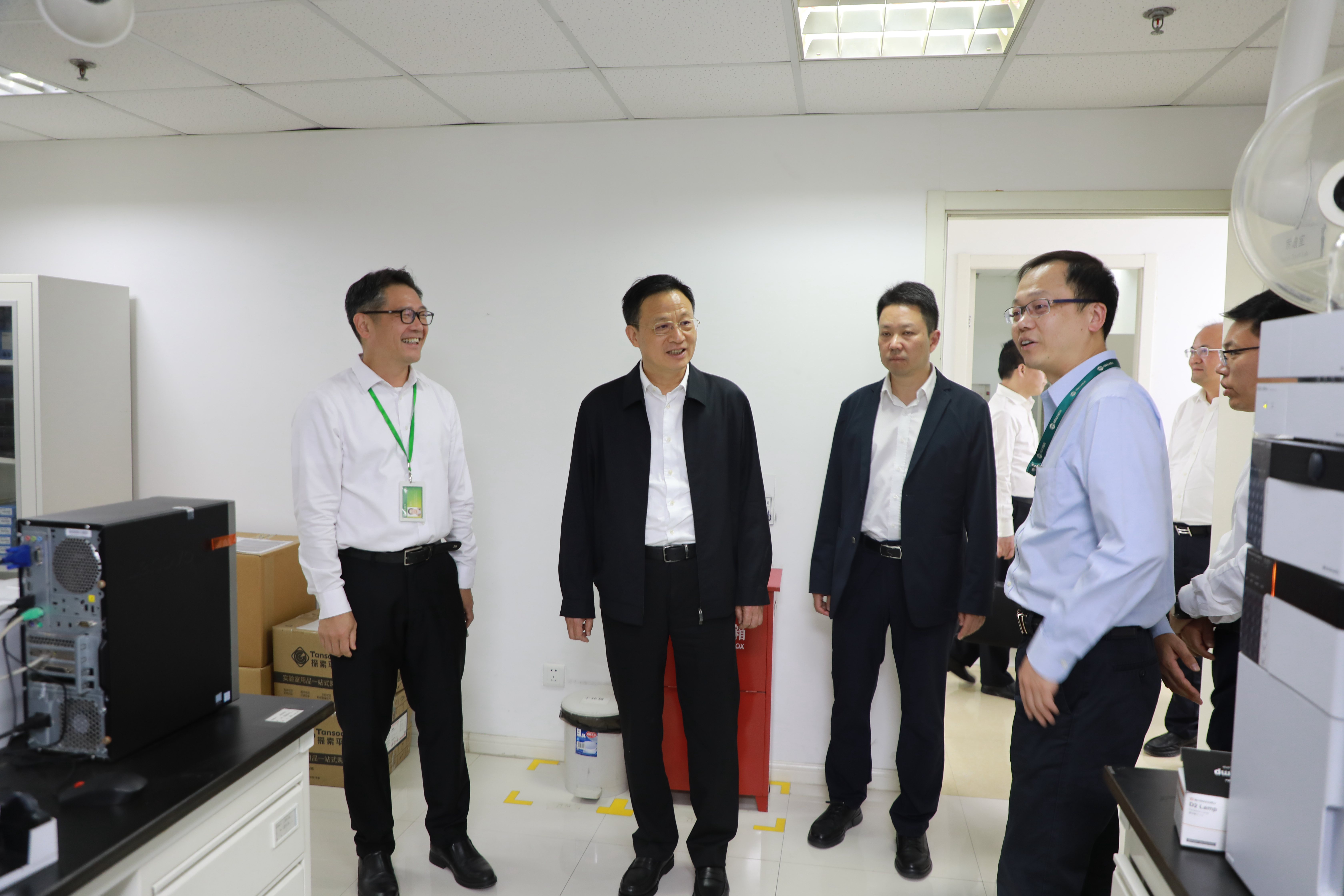 王祺扬书记一行在蔡彤董事长等人的陪同下参观了张江创新中心,听取了雅本化学关于 “技术立企”的理念汇报,并表示公司持续高强度的研发投入和创新精神给人留下了深刻印象。