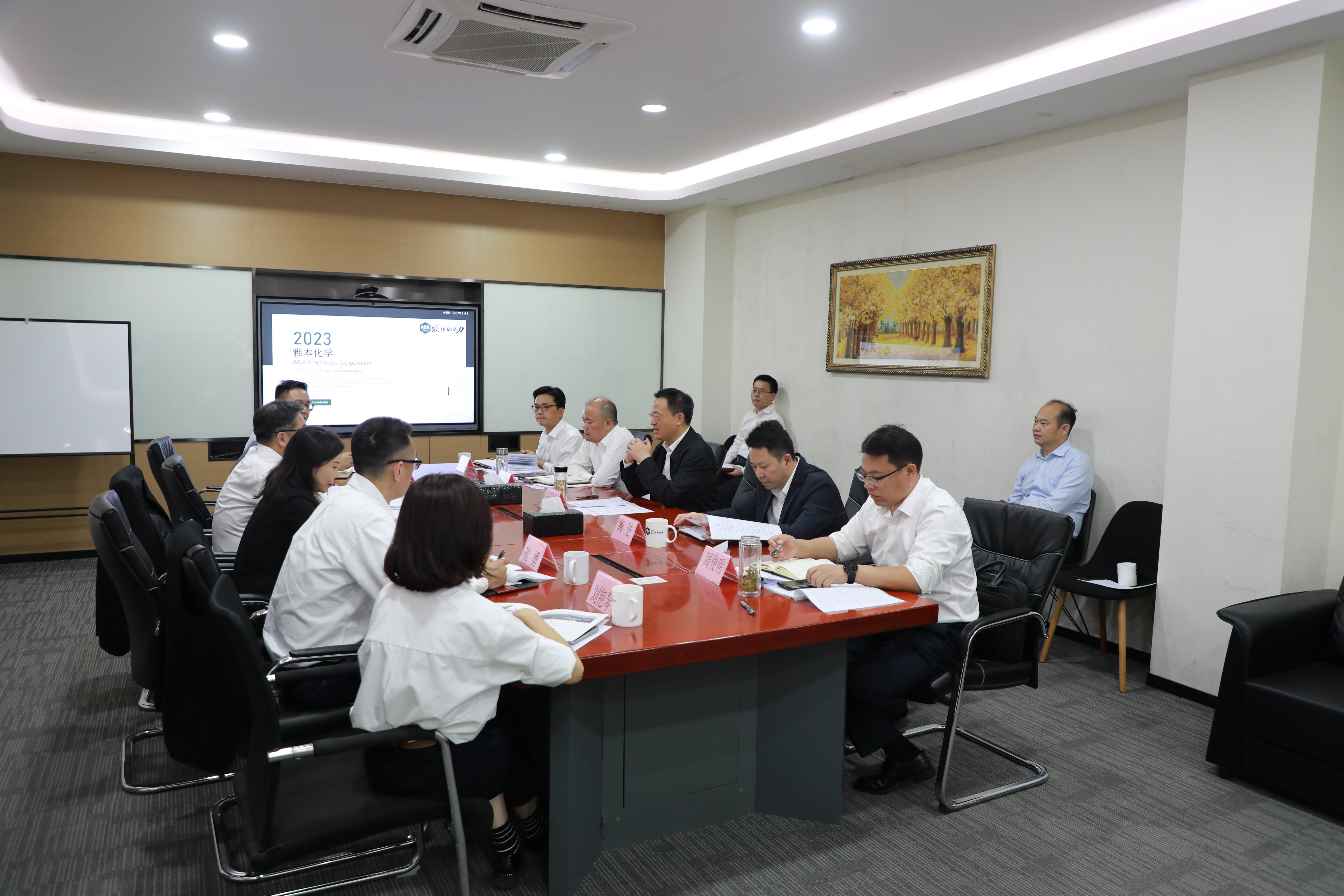 而后,各方在会议室落座交流。张学林副市长首先向大家介绍了襄阳市经济社会发展情况及与本次调研有关的事项。随后,雅本化学董事兼副总经理王卓颖重点汇报了公司“2+X”战略布局和相关重点项目在襄阳协作工厂的落地情况。礼进生物董事长兼总经理王结义博士、美丽境界资本合伙人崔勇、益方生物工艺研发高级总监刘艳琴博士分别向来宾们介绍了各自企业的基本情况和发展规划。